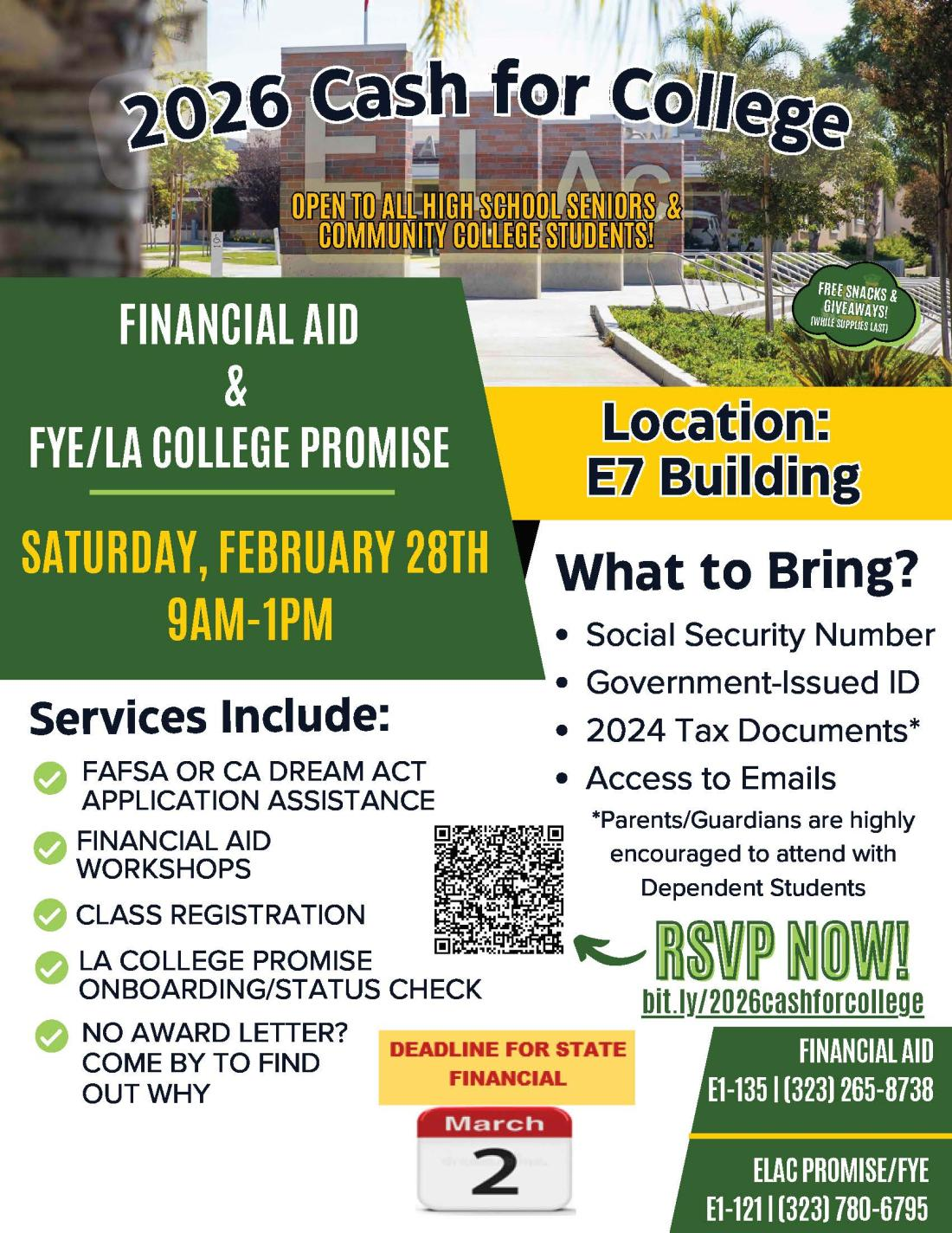 Cash for College at ELAC Cash for College event on Saturday, January 24, 2026 at ELAC. Click on the link to learn more.